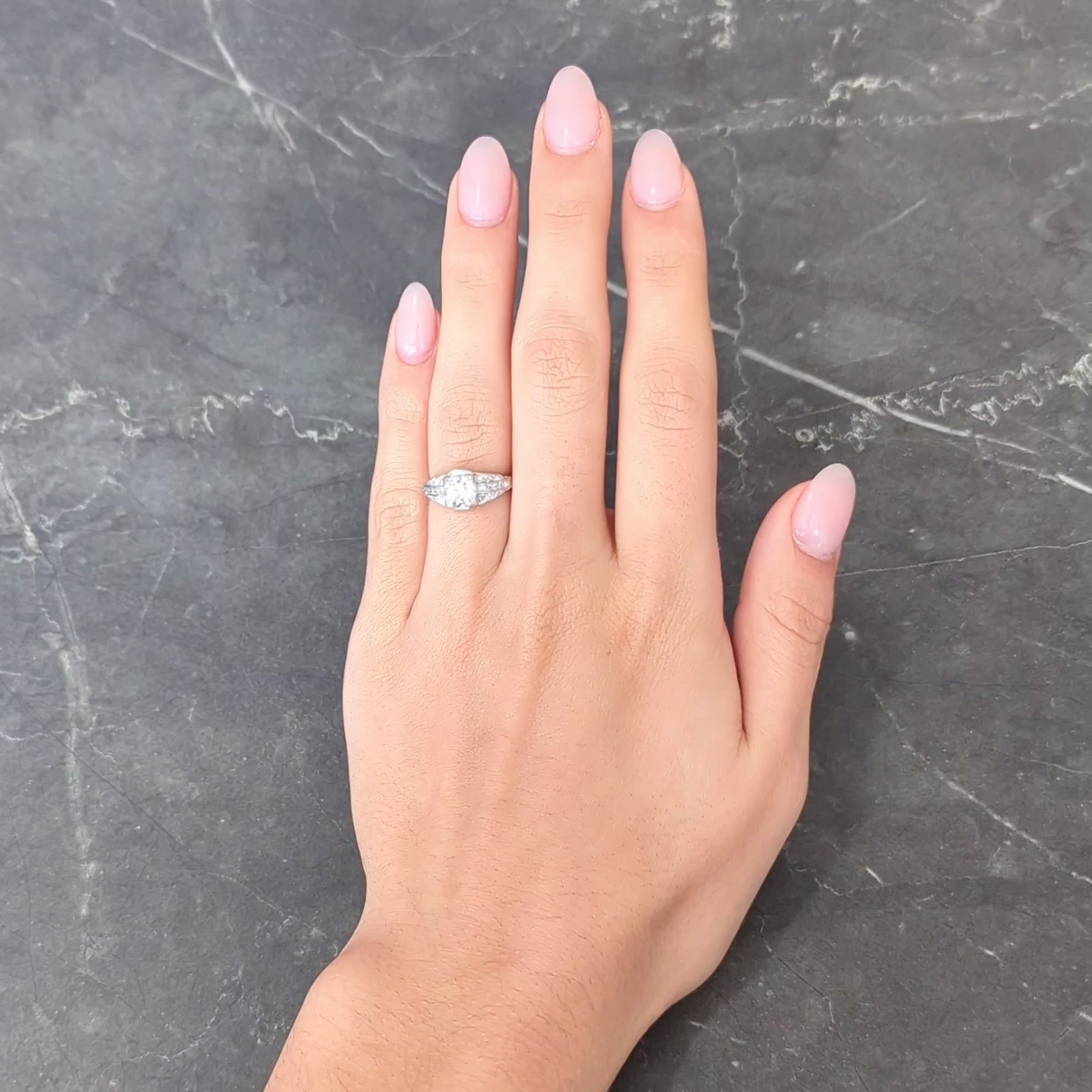 Art Deco 1.35 CTW Old European Cut Diamond Platinum Square Form Stepped Vintage Engagement Ring