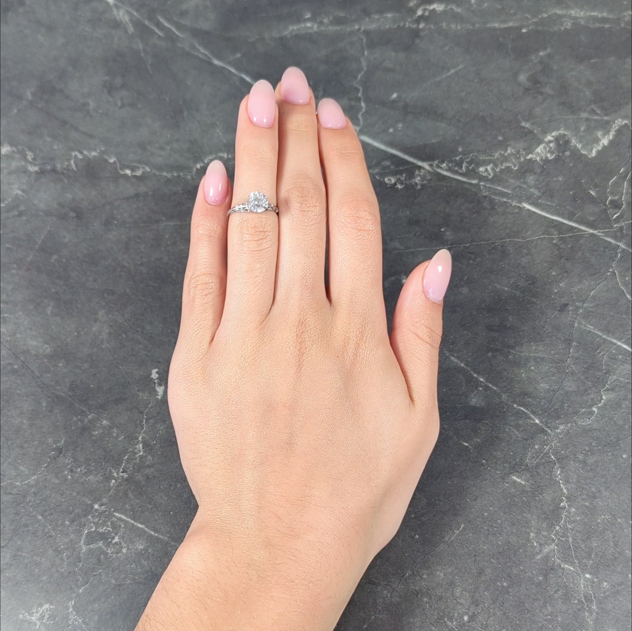 - I color with SI2 clarity and set in a six prong pierced mounting