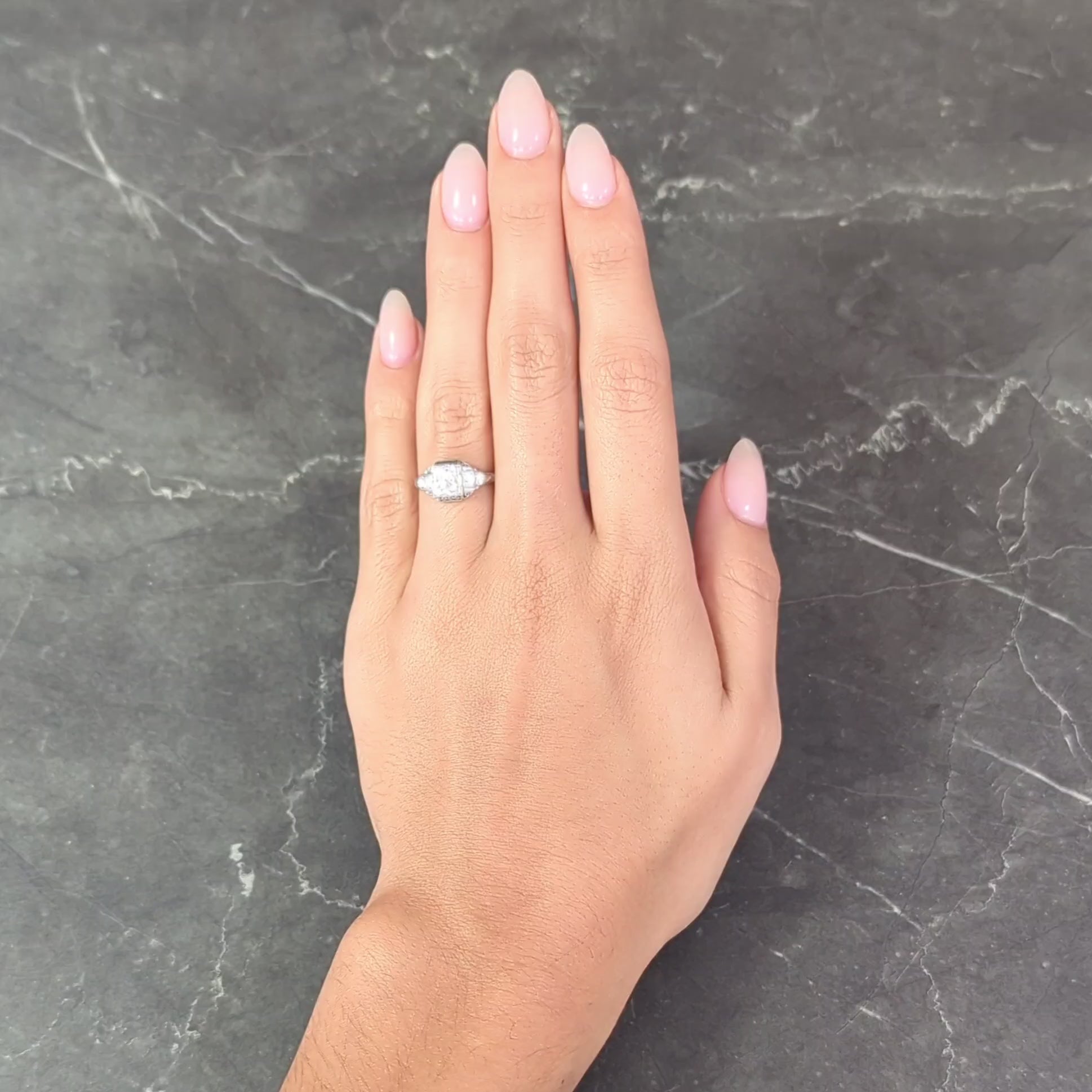 Art Deco 1.58 CTW Old European Cut Diamond 18 Karat White Checkerboard Vintage Engagement Ring
