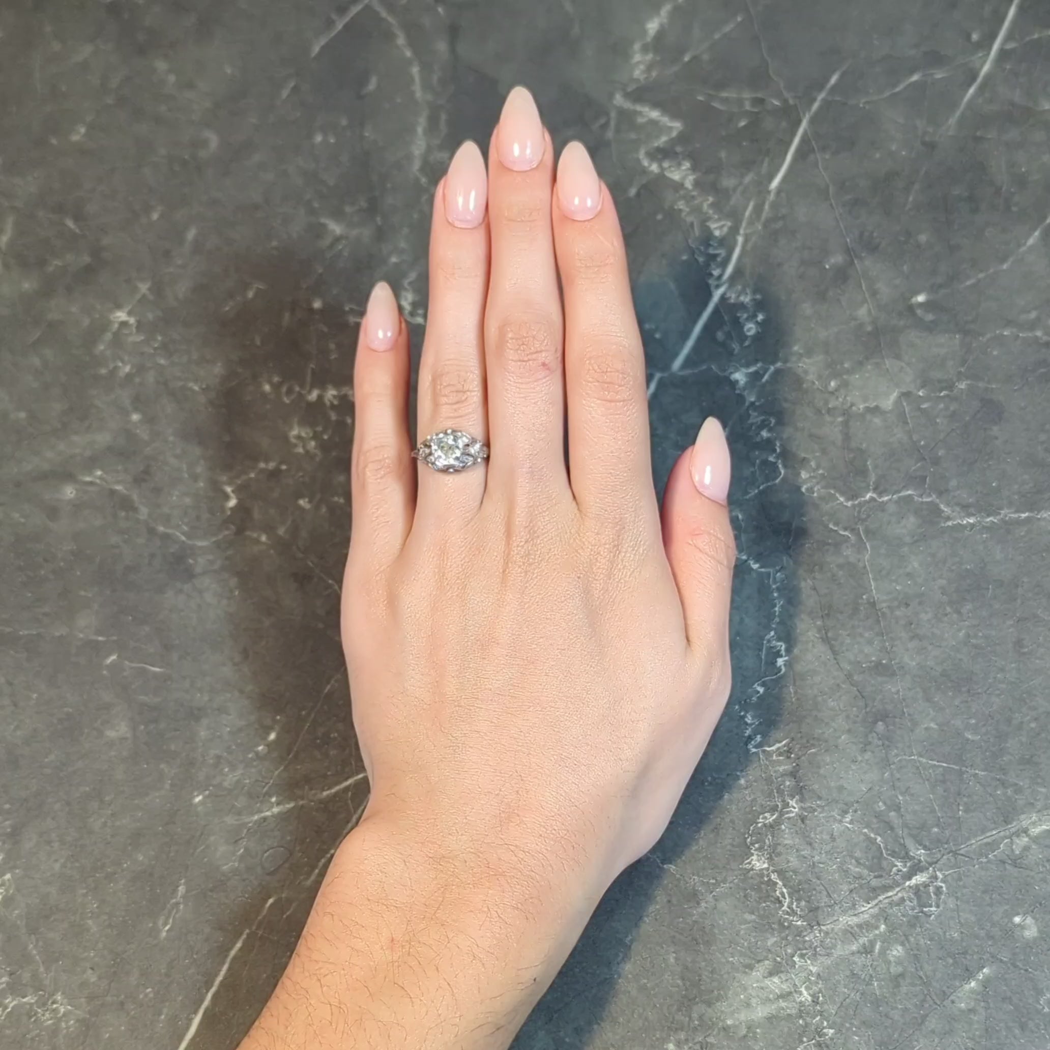 Art Deco 1.76 CTW Old Mine Diamond Platinum Foliate Bombé Vintage Engagement Ring