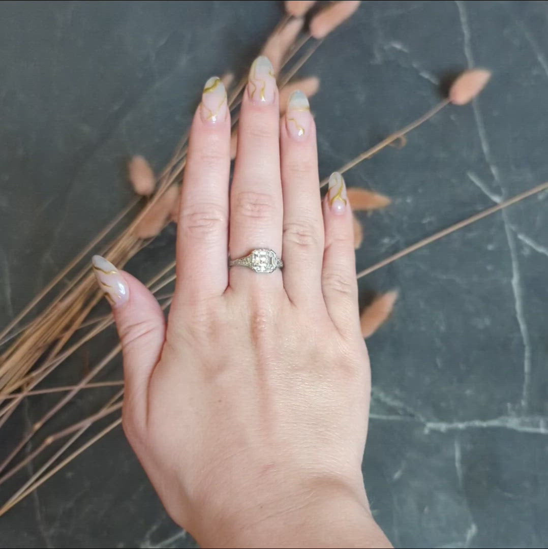 Art Deco 3.17 CTW Asscher Cut Diamond Platinum Geometric Vintage Engagement Ring GIA