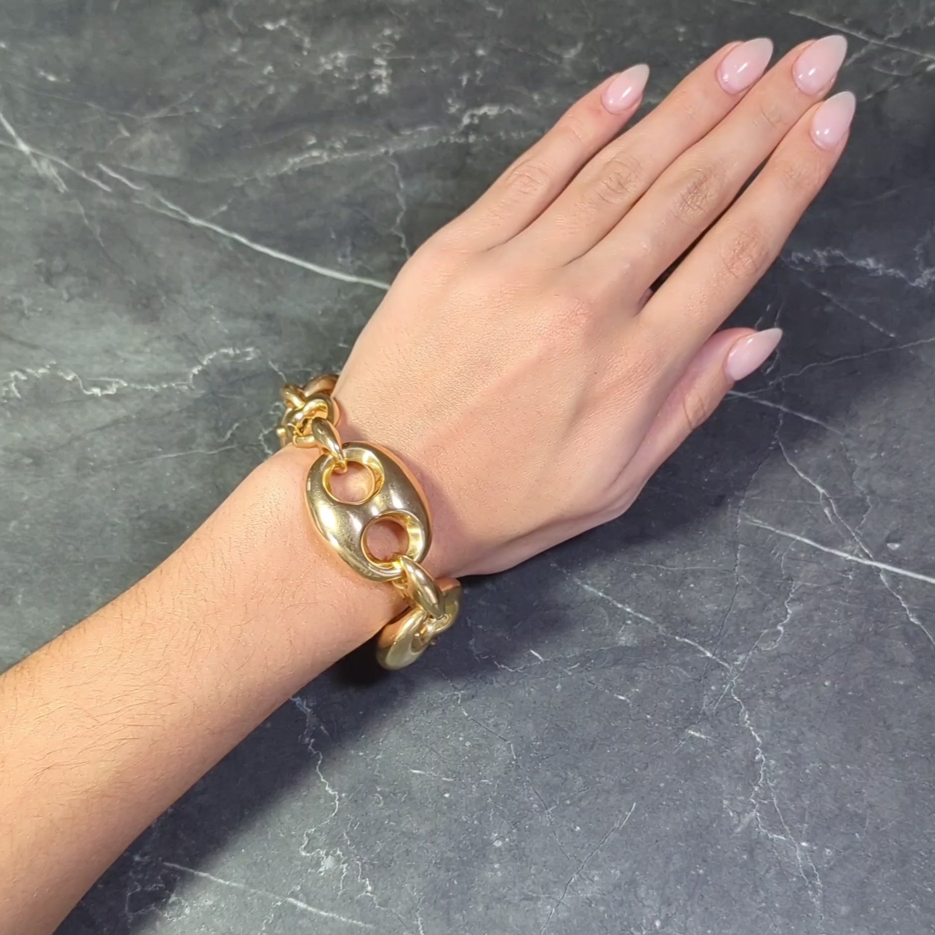 - Designed as a stylized link bracelet with alternating large and small mariner links