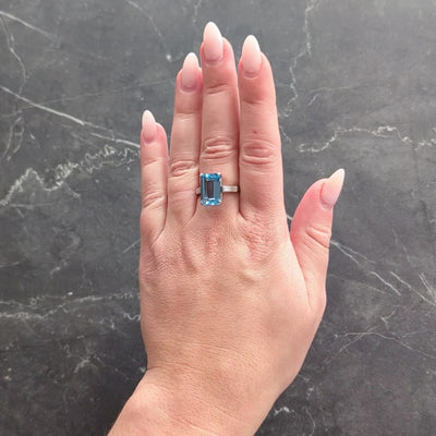 Mid-Century 5.25 CTW Aquamarine Diamond Platinum Vintage Cocktail Ring