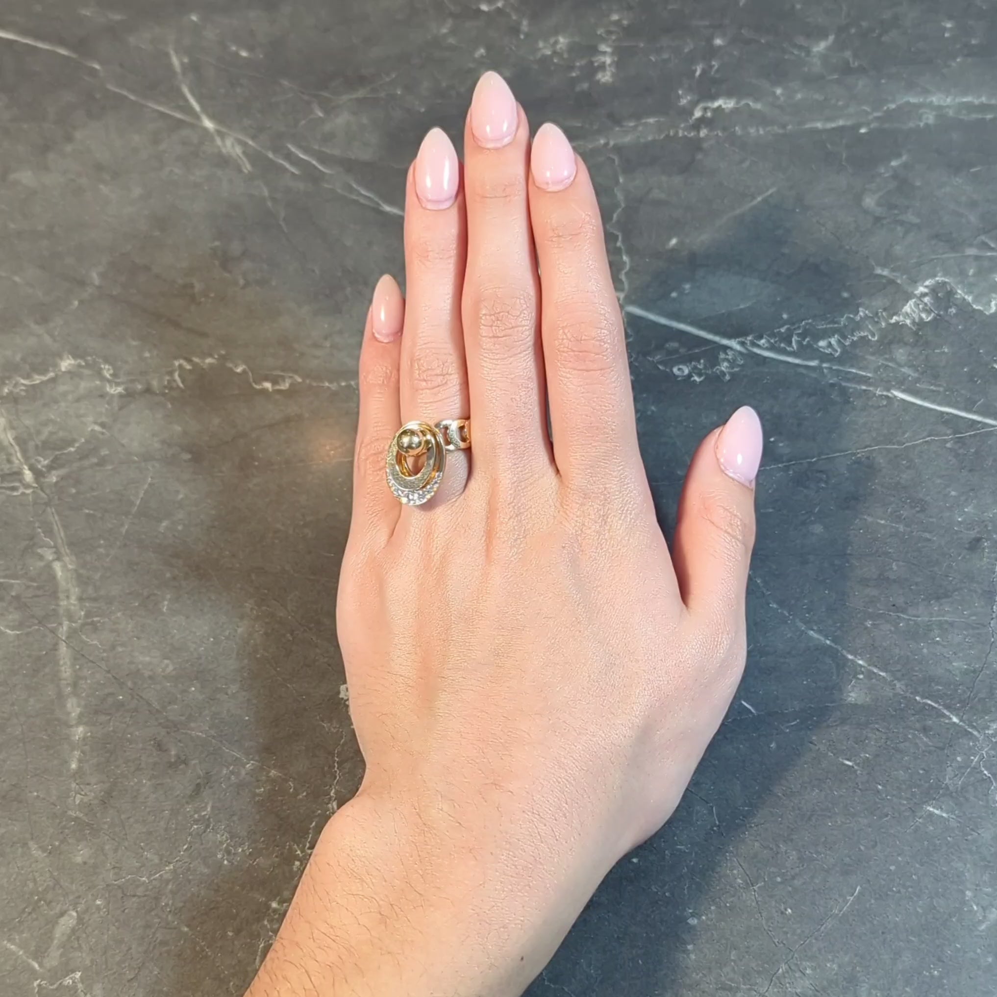 Norman Teufel Diamond 18 Karat Gold Arch Vintage Kinetic Fidget Spinning Ring