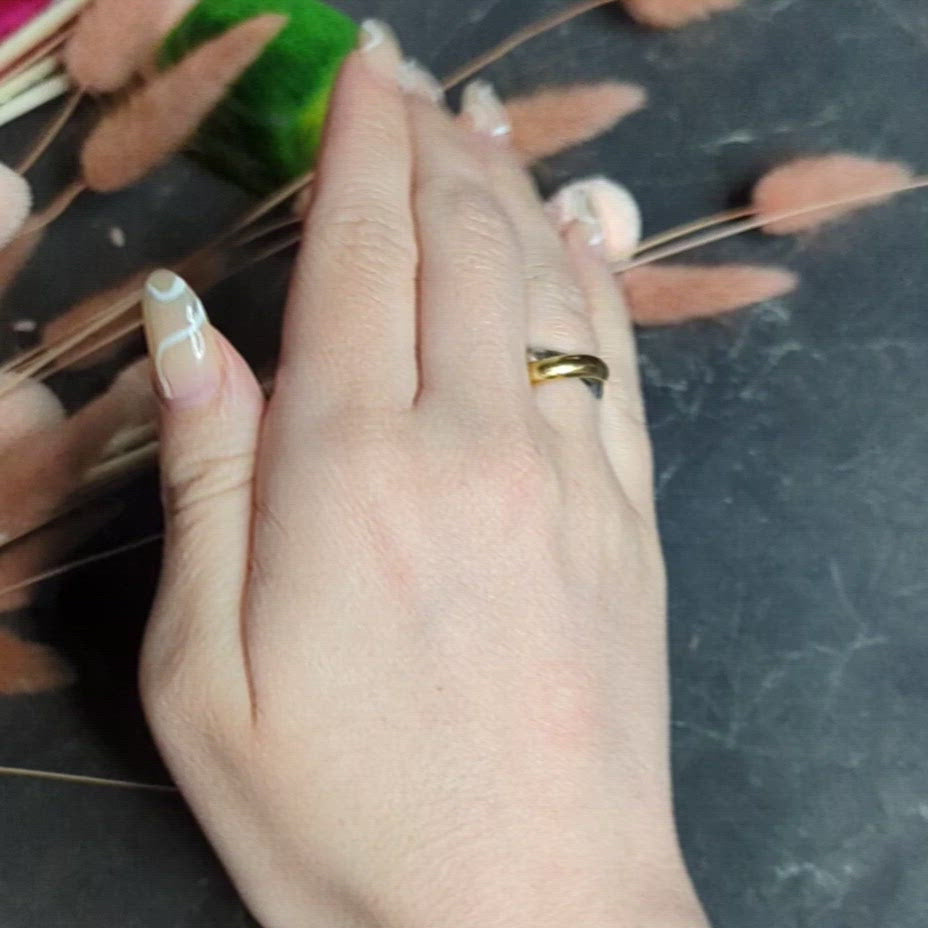 - Designed as two intersecting white and yellow gold band rings with a high polished finish