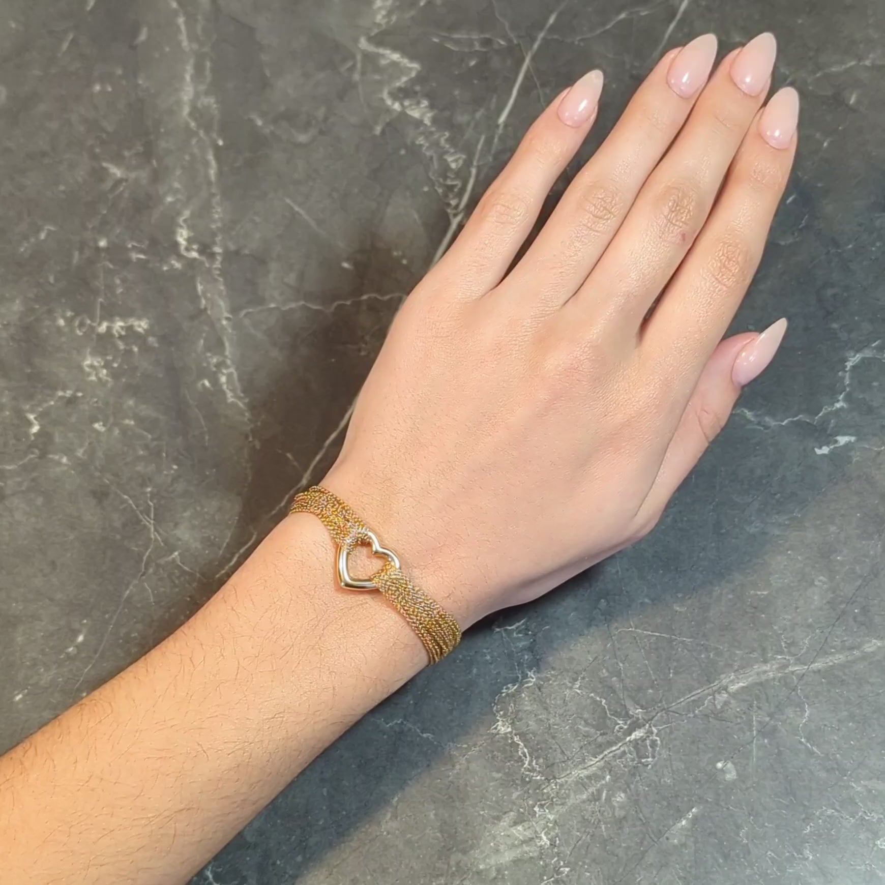 - Designed as multi-strand mesh bands centering a pierced heart motif