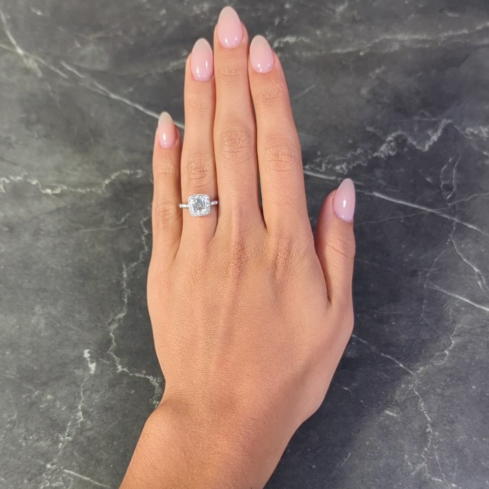 - Centering a signature Legacy mixed cushion cut diamond weighing 1.08 carats - D color with VVS2 clarity