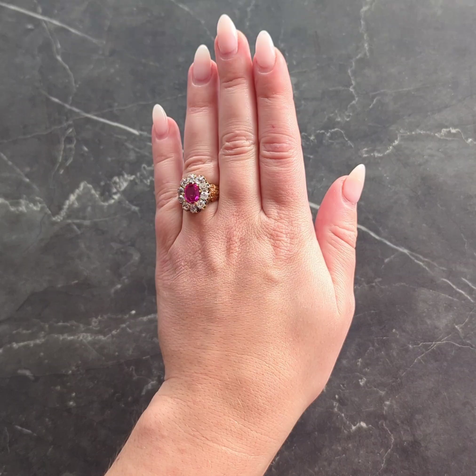 Victorian 1863 No Heat Burma Pink Sapphire Diamond 18 Karat Yellow Gold Antique Halo Ring AGL