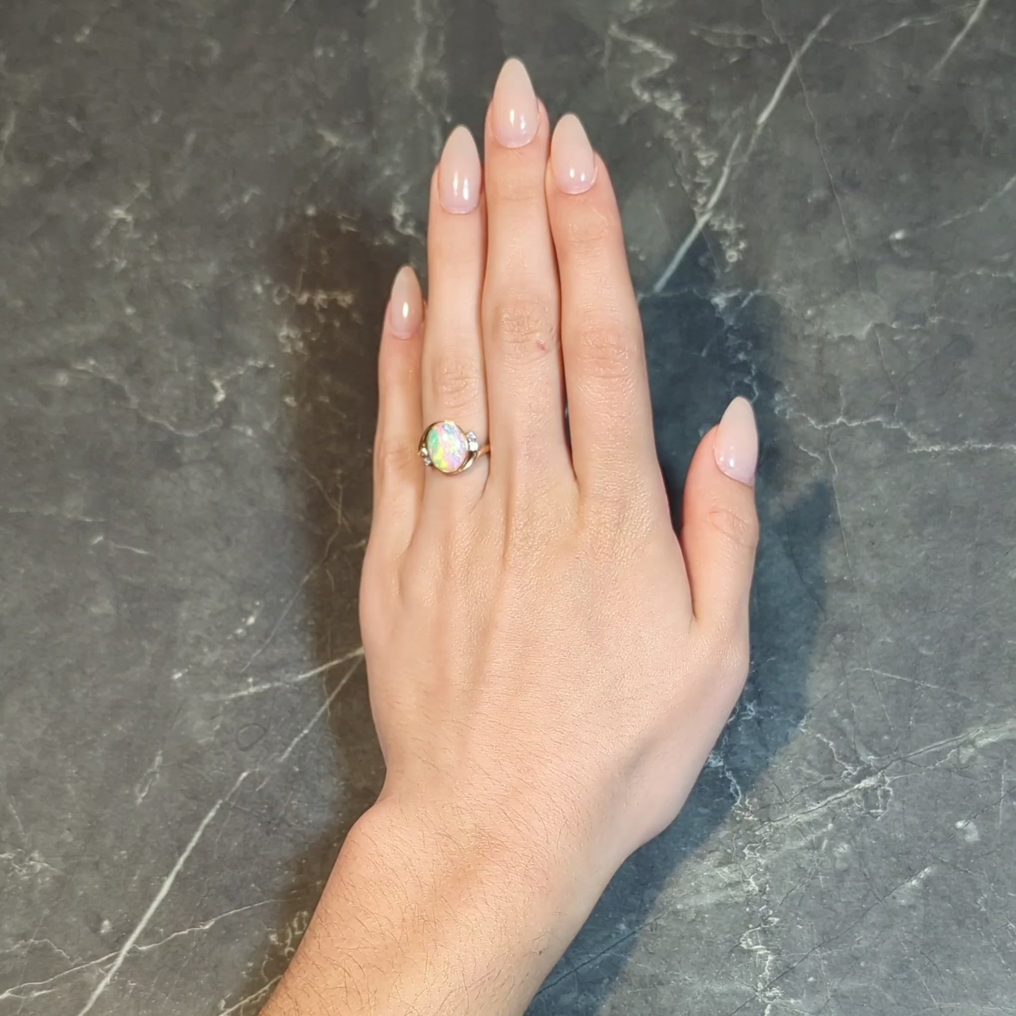 Vintage Opal Cabochon Diamond Platinum 14 Karat Yellow Gold Bypass Ring